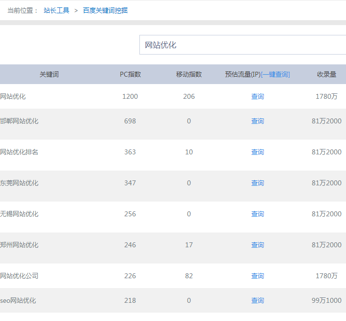 比如以“淄博網(wǎng)站優(yōu)化”為例,筆者用站長(cháng)工具試了下。大家可以看看出現的關(guān)鍵詞。
